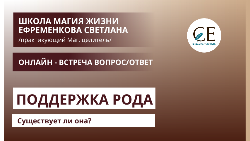ПОДДЕРЖКА РОДА. Светлана Ефременкова. Школа МАГИЯ ЖИЗНИ