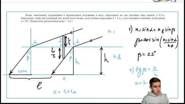 Палка, наполовину погружённая в вертикальном положении в воду, отбрасывает на дно бассейна - №31370