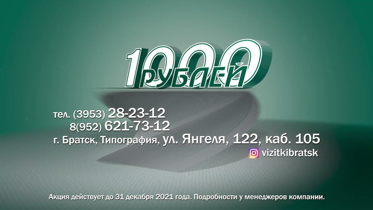 1000 визиток за 1000 рублей. Город Братск.
