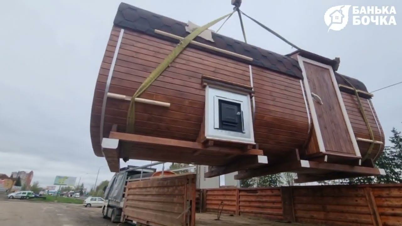 Разгрузка выставочной бани-квадро 5 м