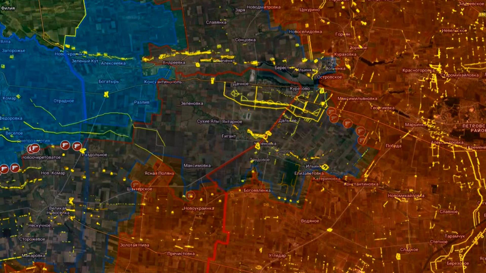 Изменение линии фронта с ноябрь 2024 по февраль 2025 года в районе Курахово и Великой Новоселки