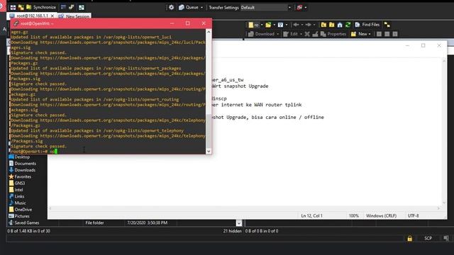 INSTALL OPENWRT PADA TPLINK ARCHER A6 1. Download firmware OPenwrt https://openwrt.org/toh/hwdata/tp-link/tp-link_archer_a6_us_tw - Firmware OpenWrt snapshot Install & Firmware OpenWrt snapshot Upgrade 2. Install Fw tsb lewt web Gui Tplink 3. Jika Instalasi sudah selesai silahkan download putty & Winscp 4. Koneksi router dengan internet, dengan cara colokan sumber internet ke WAN router tplink 5. update dulu openwrtnya - opkg update 6. setelah update, upgrade openwrt ke Firmware OpenWrt snapshot Upgrade, bisa cara online / offline cara Online dengan menginstall package widget dulu - opkg install wget - wget [URL Firmware OpenWrt snapshot Upgrade] --no-check-certificate - sysupgrade -v [NAMAFILE.bin] Cara Offline - copy file hasil downloadtan Firmware OpenWrt snapshot Upgrade ke folder /tmp (menggunakan Winscp biar gampang) - masuk ke putty lagi - cd /tmp - sysupgrade -v [NAMAFILE.bin] 7. update lagi routernya seperti perintah di no.5 8. setelah selesai install package Lucinya dengan perintah - opkg install luci-ssl-nginx - opkg install --force-depends --force-maintainer --force-overwrite wpad-openssl