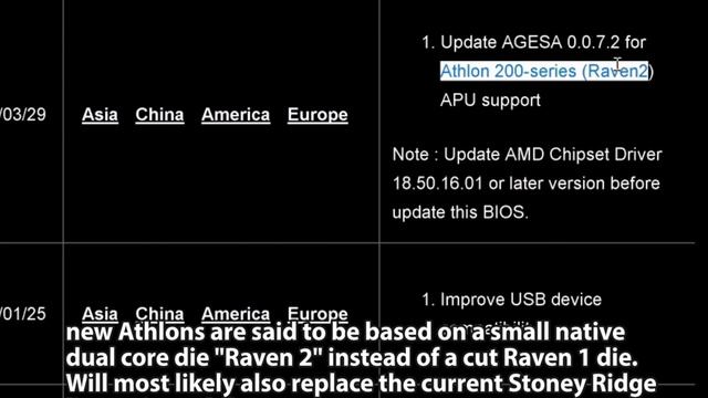 Asus has now finally listed AMDs new Athlon CPUs based on their small raven 2 die.