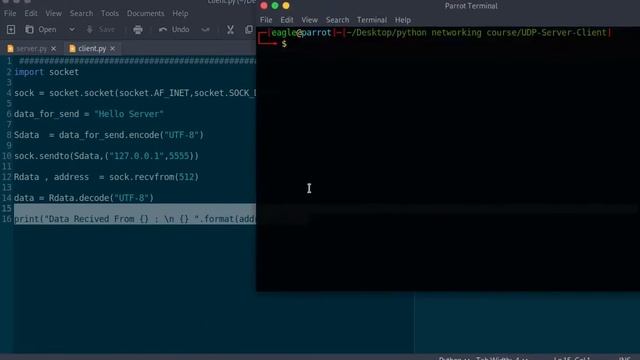 3 - برمجة client بستخدام بروتوكول udp python networking course . cyber school .
