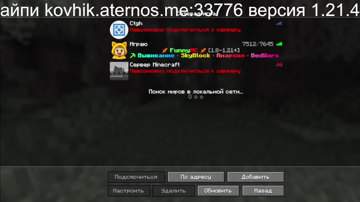 Айпи kovhik.aternos.me:33776 версия 1.21.4