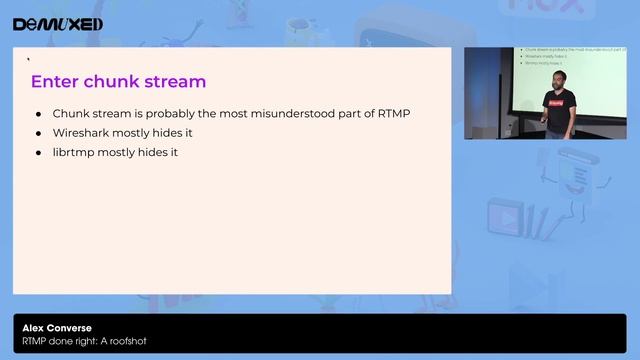 A great man once said we choose not to go to the roof because it looks good in your promo packet. We go to the roof because it's right there. There's a ton of moonshot tech (from WebRTC to SRT and RIST to the new IETF media over QUIC) that seems well positioned to revolutionize live video ingestion in the coming years. But RTMP is still deeply entrenched in many platforms and tools. What can we do with RTMP right now to make video ingestion work better? This talk will walk through how to get better performance out of RTMP by better managing a TCP connection for real-time data and by better use of tools that have been in the RTMP spec this whole time. As they say in the movie Hackers, "there's an Olympic-sized swimming pool on the roof." Bring your suit. This talk was presented at Demuxed '22, a conference for video nerds in San Francisco featuring amazing talks like this one. Demuxed '22 was made possible by sponsors like our Platinum sponsor Daily (https://daily.co) and organized by people from Mux (https://mux.com). For more information about the conference and community, see https://2022.demuxed.com.