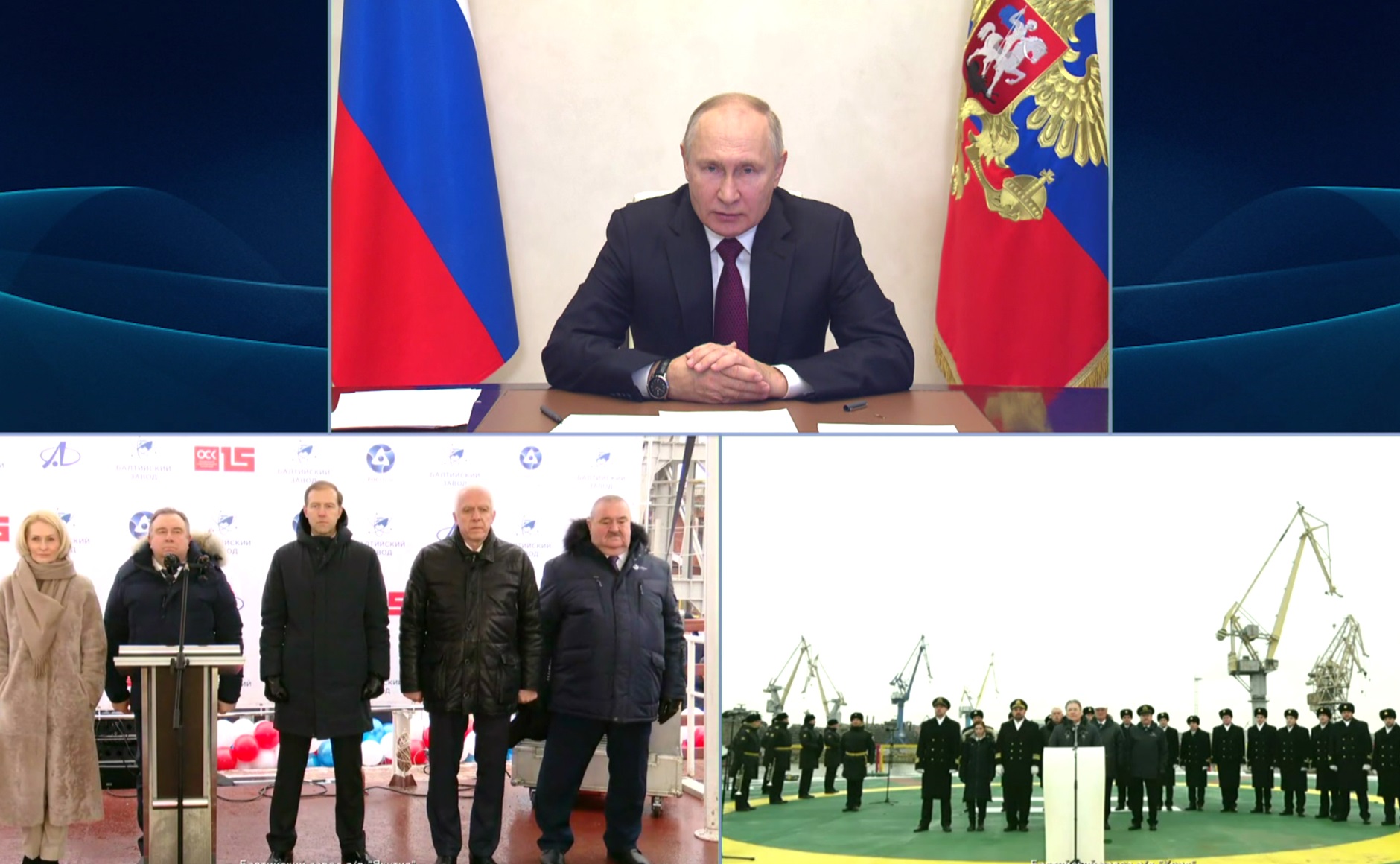 Владимир Путин на церемонии спуска атомных ледоколов "Урал" и "Якутия"