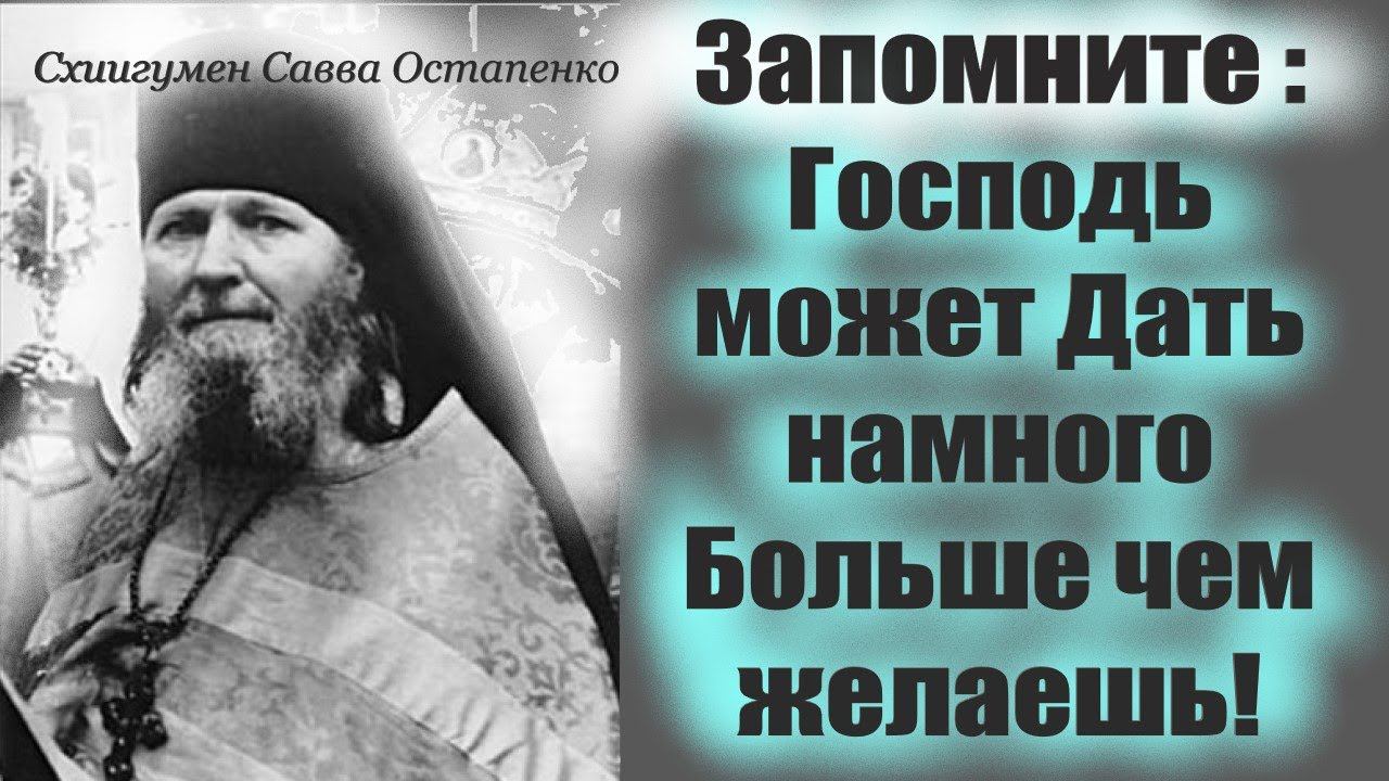 ОН может дать намного Больше чем желаешь! Схиигумен Савва Остапенко