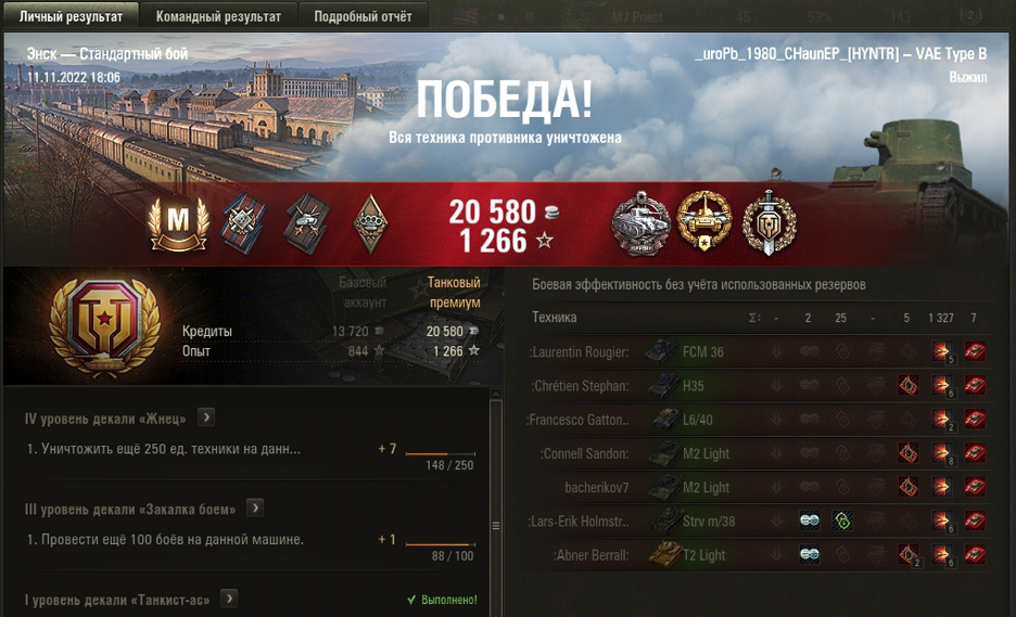 ЭНСК МАСТЕР на Vickers Mk. E Type B ОПЫТ: 844 УРОН: 1327 ФРАГОВ 7 медали ВОИН КАЛИБР и НАЙДИНА