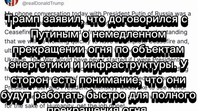 Трамп заявил в Truth Social, что договорился с Путиным о прекращении атак на энергообъекты Украины