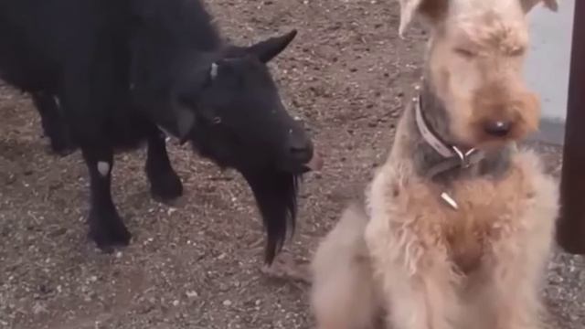 Самый терпеливый пёс🐐😑 ( видео про собак и коз )