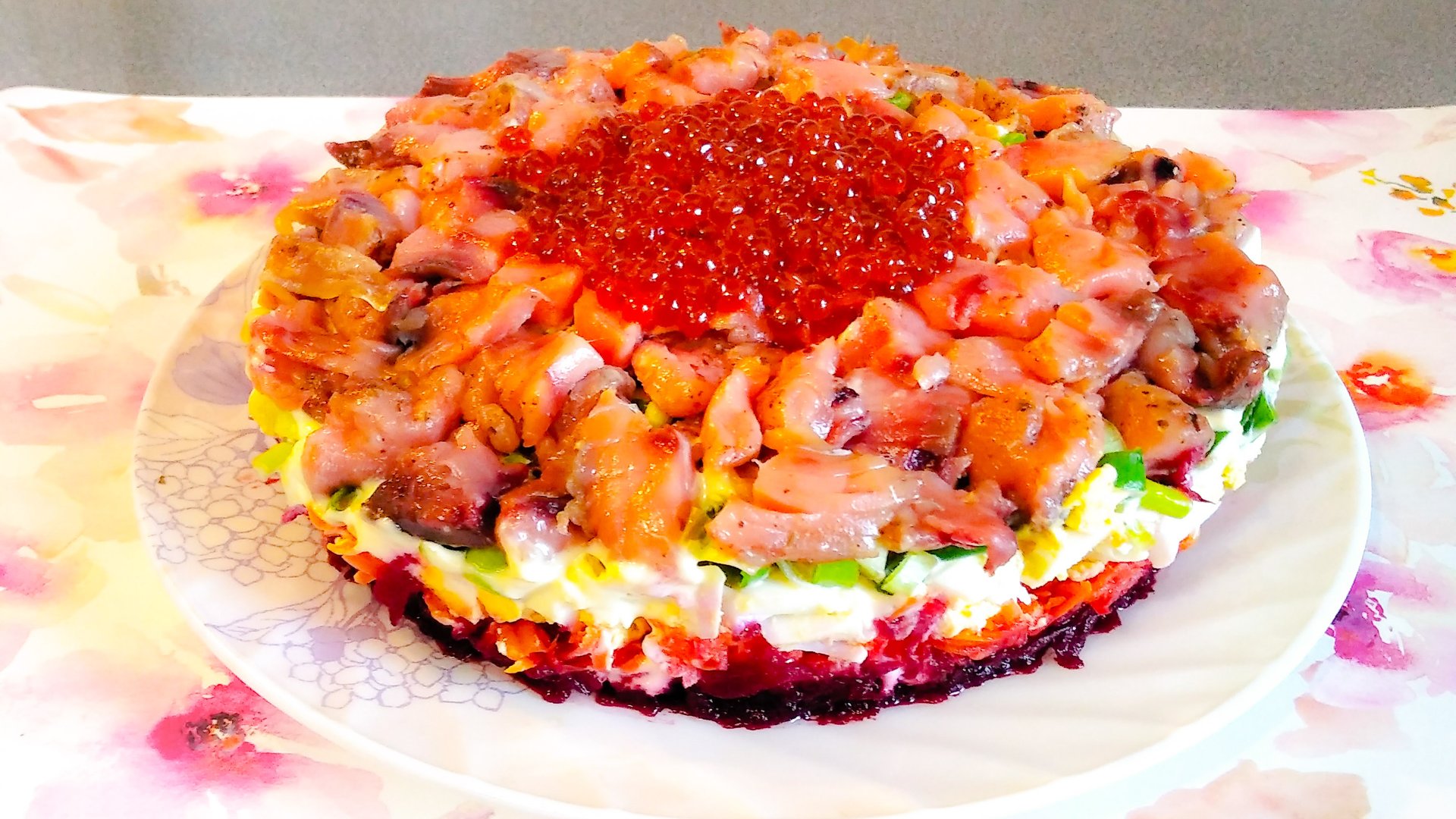 Слоеный салат с ИКРОЙ и красной рыбой на праздничный стол