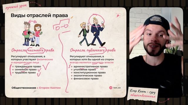 Отрасли частного и публичного права для ОГЭ по обществознанию Подписывайтесь на телегу, там круто: https://t.me/kant_soc Чтобы узнать подробнее о подготовке, пишите в сообщения официальной группы в ВК: https://vk.com/shkolkovo_oge Записаться на подготовку со мной: https://3.shkolkovo.online/na-poryadok-vyshe-oge?utm_source=tg&utm_content=kant_soc Немного обо мне: - Егор Кант - Преподаватель обществознания ОГЭ в Школково - Самый популярный преподаватель обществознания в TikTok (300К+ подписчиков) и YouTube (500К+ на основном канале) - Эксперт ЕГЭ с 2021 года - Дважды сдал ЕГЭ по обществу на 100 баллов - Каждый второй ученик сдает ОГЭ на 5, в 2023 году ни один не сдал ниже 4 Подпишись, поставь лайк и колокольчик, чтобы не пропустить выход новых видео) #огэ2025 #обществознание #огэ #огэобществознание #репетитор #егоркант #школково #обществознаниеогэ2025 #обществознаниеогэ2025 #репетиторогэ #подготовкакогэ #огэпообществознанию #9класс #9классобществознание #огэна5 #подготовкакогэпообществознанию #огэ2024 #обществознаниеегэ