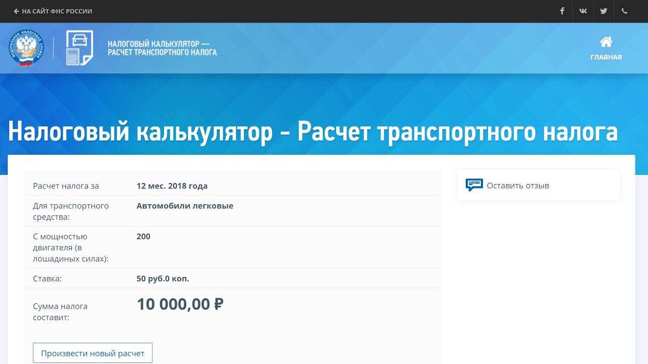 Налоговый калькулятор - Расчет транспортного налога