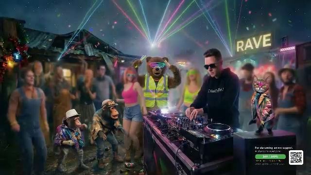 Рейв в деревне 24/7. Звёзды над головой, бас в груди. Кошачий продюсер и команда "рвут танцпол"
