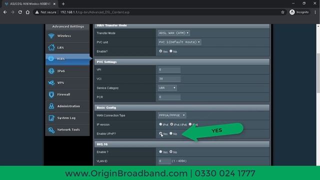 Configuration Asus DSL-N16 ADSL Router in Origin Broadband