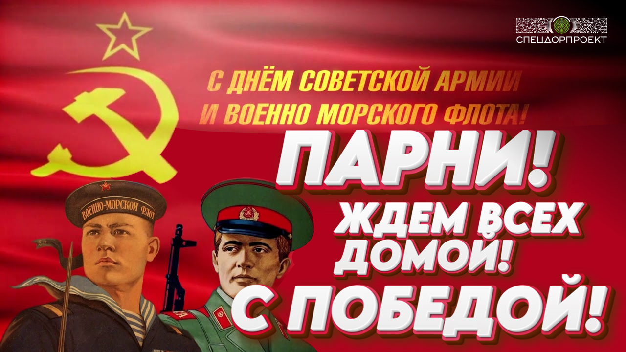 Парни, с Праздником! С Днём защитника Отечества = с Днём Советской армии и Военно-морского Флота! Ждём всех домой! С Победой! К.А.
