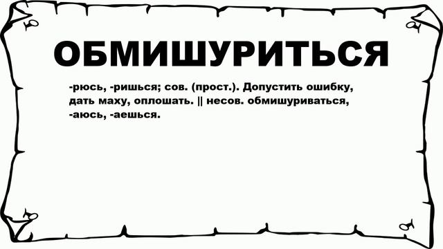 Хочешь знать что значит ОБМИШУРИТЬСЯ? тогда слушай до конца. #n #n -рюсь, -ришься; сов. (прост.). Допустить ошибку, дать маху, оплошать. || несов. обмишуриваться, -аюсь, -аешься. #n #n Больше слов: #слова #словарьрусский #значениеслов