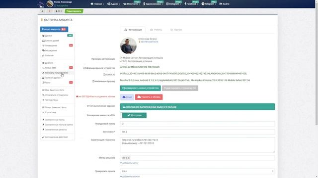 Работа с карточкой аккаунта