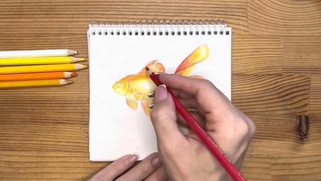 Как нарисовать золотую рыбку цветными карандашами | Рисунок поэтапно для детей