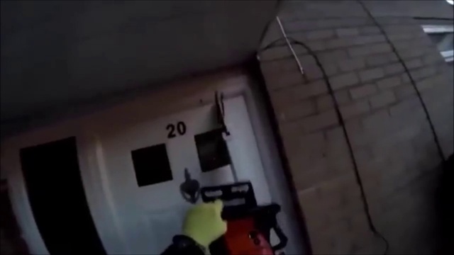 Уэльс. Полиция пилит двери бензопилой (31.03.2016 г.)