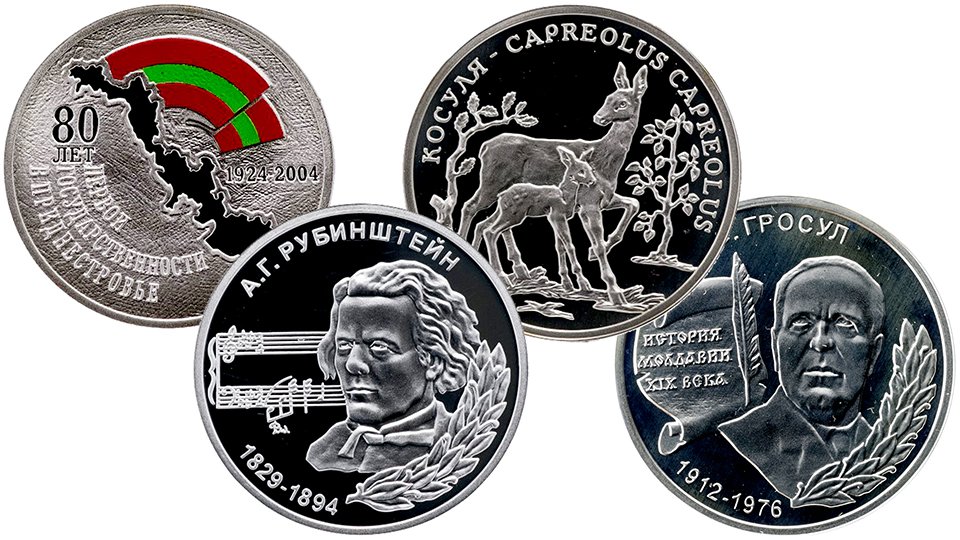 Серебряные монеты Приднестровья выпуска 2004 года.