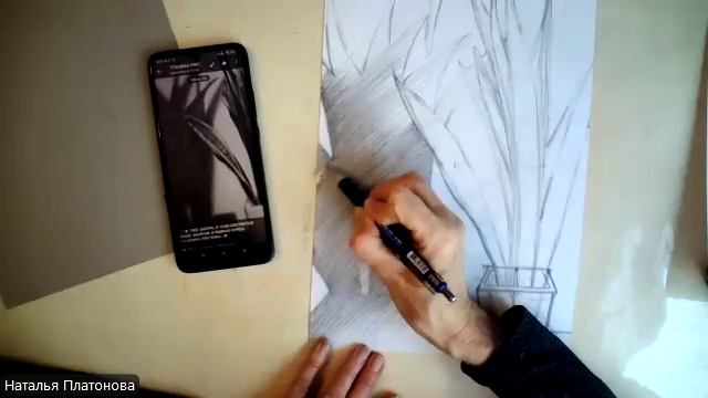 Сансевиерия (щучий хвост) и его тень (простые карандаши)