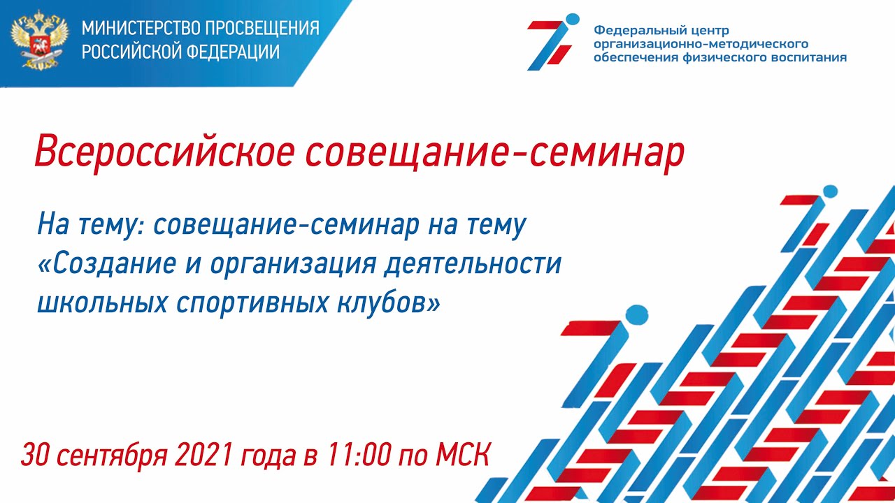 30 сентября 2021 года в 11:00 состоялся совещание-семинар на тему «Создание и организация деятельности школьных спортивных клубов» в формате ВКС с представителями субъектов Российской Федерации по вопросам развития физической культуры и спорта в системе образования Российской Федерации.