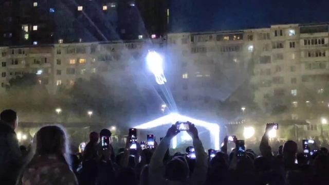 Сегодня вечером в сквере на пересечении ул. Ленинградской и Чкалова прошло лазерное шоу с новым прое