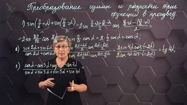 84_Формулы преобразования суммы и разности тригонометрических функций в произведение. Практика.