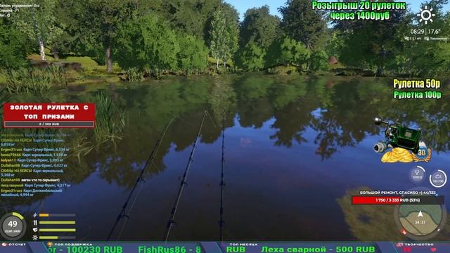 Поддержка донатом https://new.donatepay.ru/@1032463 Альтернативный донат https://www.donationalerts.com/r/kalyamba11 5536913964533059 карта Тинькоф Если стрим лагает,смотри стрим на трово https://trovo.live/s/Kalyamba_na_Ribalke Мой ВК - https://vk.com/kalyantv НИК в игре kalyan11 НАШ ДИСКОРД СЕРВЕР https://discord.gg/EZtvSgwr Заказ водоема на 1 час - 500р ( весь стрим 2500р ) Модерка на канале 1300р ( каждая следующая на 100р больше) ✅Призы в рулетке "ЗОЛОТАЯ" 500р ✔ ЗОЛОТО ✔ ПРЕМ ✔ КАТУШКИ РАПТОР 40, ВЕНГИ, ТАЙГА, СИЛЬВЕР 80, И другие ✔ ПАЛКИ ПИЛКЕРНАЯ, ДОНКА МОРСКИЕ, ✔ РОД ПОД, СТУЛЬЯ ✅Призы в рулетке СТАНДАРТ : 100р ✔ катушкИ РАПТОР 40, ВЕНГИ, ТАЙГА, СИЛЬВЕР 80, И другие ✔ катушки 60 для медного ( ЭВИИ, НАТОРЫ, ГОЛДА, и тд) ✔ ПИЛКЕРНОЕ УДИЛИЩЕ КОРОЛЕВА ОКЕАНА ✔ Морское Донное удилище ✔ прем ( 3, 7, 30 дней) ✔ золото ( 1, 3, 5, 10, 20 ,50) ✔ билет на море ( 1, 3, 5 дней) ✔ голд наживка и др. ✅Призы в рулетке "СТАРТОВАЯ" 50р ✔ катушка Венга ✔ катушка "silver80" ✔ катушка "БЕЛЫЙ КАЛИБР" ✔ катушка "Черный калибр" ✔ катушка "Протон" ✔ катушка "Нарга 6000" ✔ Набор Фидерист и спинингист ✔ Карповик Фортуна ✔ фидерные удилища ✔ прем, золото, алкашка, наживки и тд P.s Рулетка это не казино, а награда за поддержку стримера. Вечный ТОП ПОДДЕРЖКИ (10.06.2025) 1. Леха сварной 214 572 2. Dimon_pokemonchik 127 034 3. Skreb79 103 061 4. Interceptor 96 230 5. FishRus86 82 500