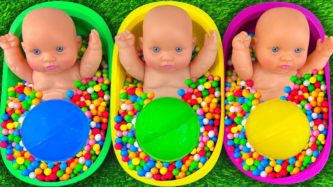 4-Минутное увлекательное видео|Купаем пупсов в разноцветных шариках ASMR