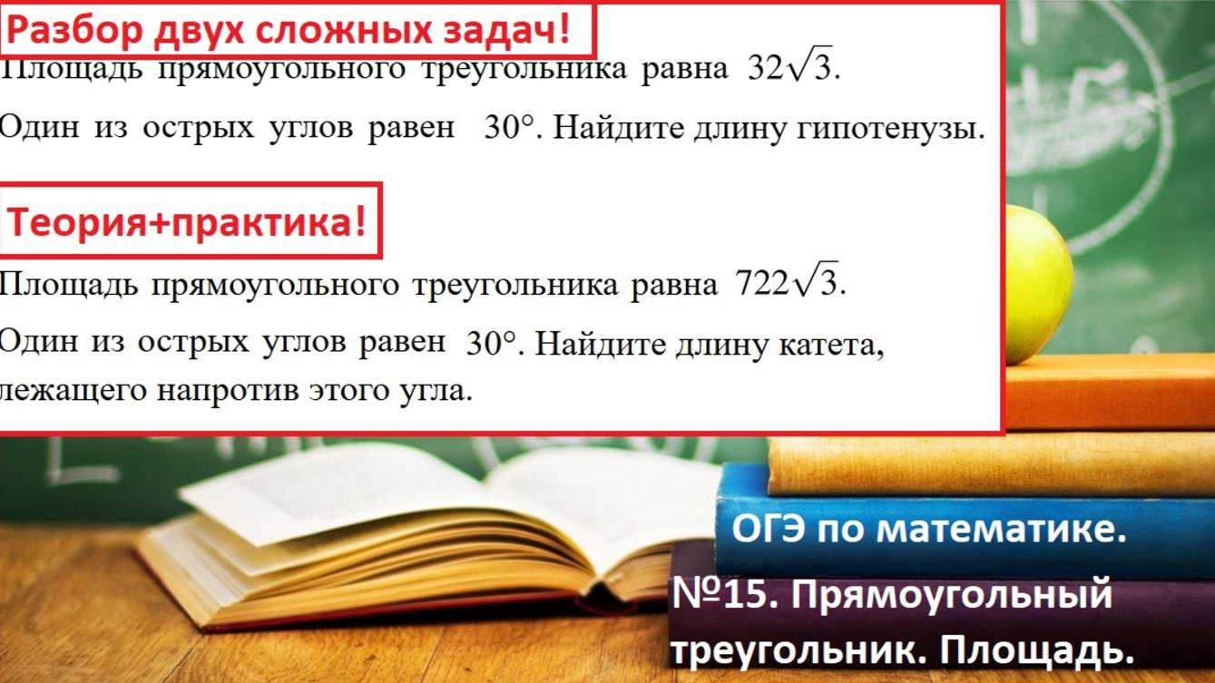 ОГЭ по математике.№15.Площадь прямоугольного треугольника. Разбор двух сложных задач.Тригонометрия.