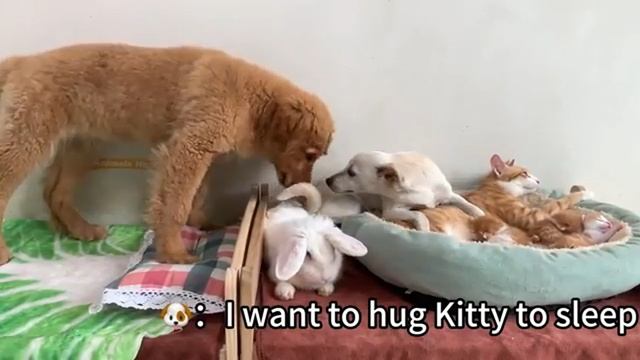 Золотистый ретривер охраняет кошек, пока они спят (2025 год)