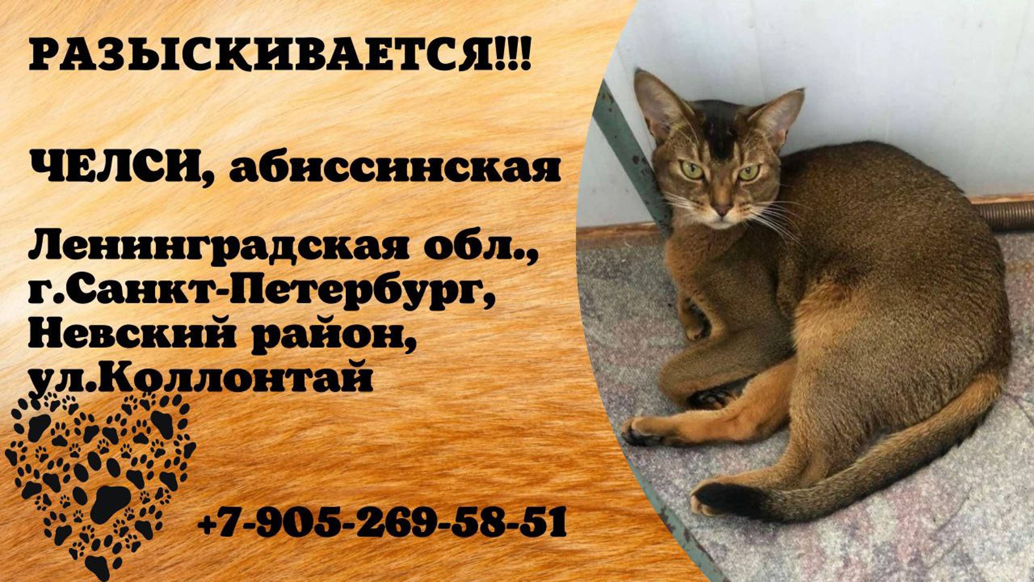Пропала кошка! ЧЕЛСИ. Абиссинская. Ленинградская обл, г.Санкт-Петербург