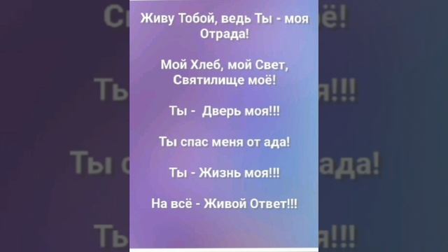 ХРИСТИАНСКИЕ ПЕСНИ ДЛЯ ХВАЛЫ ПОКЛОНЕНИЯ ПРОСЛАВЛЕНИЯ ВООДУШЕВЛЕНИЯ ЕВАНГЕЛИЗАЦИИ ДУХОВНОГО РОСТА ПРОБУЖДЕНИЯ ВОЗРОЖДЕНИЯ #господь#музыка#христианская_музыка#музика#христианскиепесни#бог#христианскиестихи#любовь#христианство#стихи#песня#песни#иисус#иисусхристос#иисусмойбог#иисус_христос#иисусбог#иисусгосподь#хвалы_и_поклонения#хваление#хвала#прославление#духсвятой#духовныйрост#духовноепробуждение#духовность#евангелие#евангелизация#евангельскаявесть#духовный_рост#пробуждение#рождество#рождествохристово#божий#божийнарод#божьеслово #ХристианскаяПесня #ХристианскоеПоклонение #ХристианскаяНоваяПесня #ПастырьМоейДушы #ХристианскаяМузыка #ПесняСлавы #Иисус #ЛюбовьБожья #ХристианскиеТексты #СлаваГосподу #ВераИПоклонение #ВечнаяЛюбовь #RussianChristianSong #RussianChristianWorship #RussianChristianMusic #RussianWorship #NewRussianChristianMusic #RussianChristianMusic #RussianSongOfPraise #Jesus #GodsLove #ChristianLyrics #GloryToGod #RussianFaithAndWorship #EternalLove https://stihi.ru/avtor/zhanna70 "ТЫ - МОЙ ЖИВОЙ ОТВЕТ!" СЛОВА, МУЗЫКА, ОБРАБОТКА: ЖАННА ВОЛКОВА-ВАРЛАМОВА Стихи Жанна Юрьевна Волкова-Варламова https://stihi.ru/2023/06/18/4299 1 куплет Спаситель мой! Ты совершил Всё!!! Ты умер и воскрес на третий день. Взошёл на крест, и, пригвоздил весь грех там... Остались на кресте болезни все!!! Припев: Живу Тобой, ведь Ты - моя Отрада! Мой Хлеб, мой Свет, Святилище моё! Ты - Дверь моя!!! Ты спас меня от ада! Ты - Жизнь моя!!! На всё - Живой Ответ!!! Припев: Живу Тобой, ведь Ты - моя Отрада! Мой Хлеб, мой Свет, Святилище моё! Ты - Дверь моя!!! Ты спас меня от ада! Ты - Жизнь моя!!! На всё - Живой Ответ!!! Припев: Живу Тобой, ведь Ты - моя Отрада! Мой Хлеб, мой Свет, Святилище моё! Ты - Дверь моя!!! Ты спас меня от ада! Ты - Жизнь моя!!! На всё - Живой Ответ!!! Живу в Тебе и верю в ту победу, Что Ты мне дал по милости Своей. Дойду с Тобой, и, в это очень верю! Мой Бог живой и Он всегда во мне! Припев: Живу Тобой, ведь Ты - моя Отрада! Мой Хлеб, мой Свет, Святилище моё! Ты - Дверь моя!!! Ты спас меня от ада! Ты - Жизнь моя!!! На всё - Живой Ответ!!! Припев: Живу Тобой, ведь Ты - моя Отрада! Мой Хлеб, мой Свет, Святилище моё! Ты - Дверь моя!!! Ты спас меня от ада! Ты - Жизнь моя!!! На всё - Живой Ответ!!! 18.06.2023 Жанна Волкова-Варламова __________________________________________
