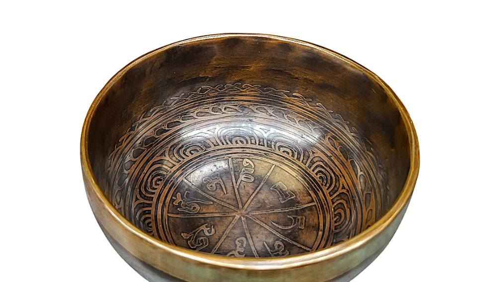 Кованая поющая чаша Etching ( 13,2 см, Нота: Ля #, 466 Гц ) / Singing Bowl / shamanic.moscow