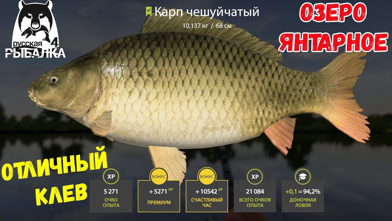 ОТЛИЧНЫЙ ФАРМ И КЛЕВ У БАЗЫ КАРПА НА ЯНТАРНОМ ОЗЕРЕ В РУССКОЙ РЫБАЛКЕ 4 РР4