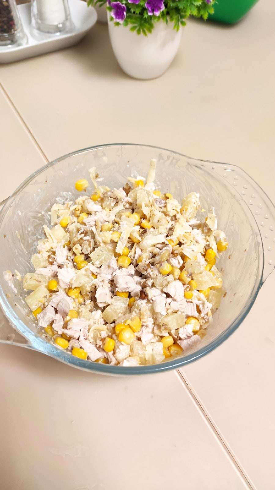 Салат с курицей, сыром и ананасом