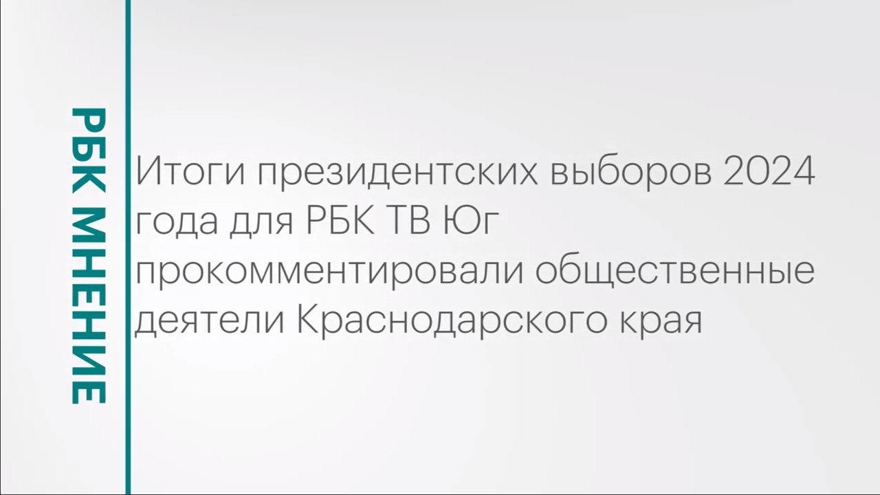Итоги президентских выборов 2024 года для РБК ТВ Юг прокомментировали общественные деятели Краснодарского края. Подписывайтесь на нас в социальных сетях: ВКонтакте: https://vk.com/rbcyug Telegram: https://t.me/rbc_krasnodar, https://t.me/rbcrostov, https://t.me/rbc_kavkaz Подпишитесь на канал РБК Юг, чтобы смотреть новые выпуски первыми!