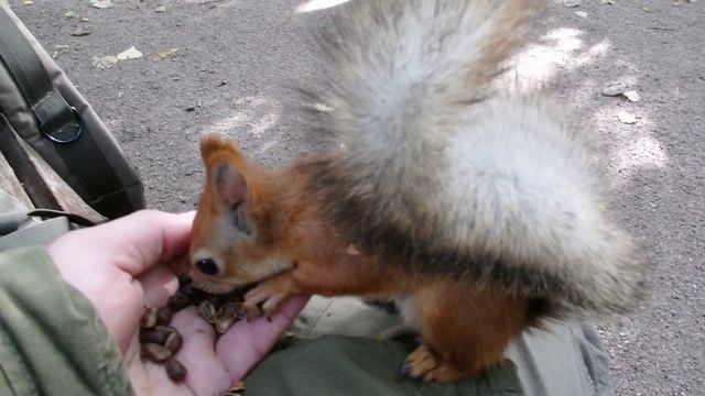 Белочка неспеша кушает кедровые орешки