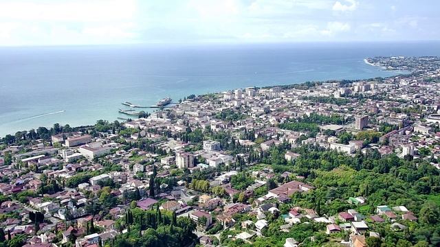 Вид на Сухум со смотровой площадки телевышки Сухумской горы в Абхазии.