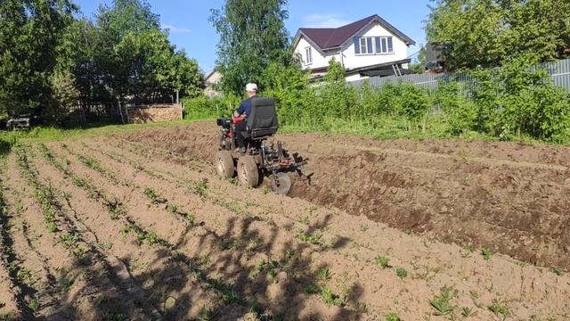 Окучивание картофеля самодельным минитрактором.