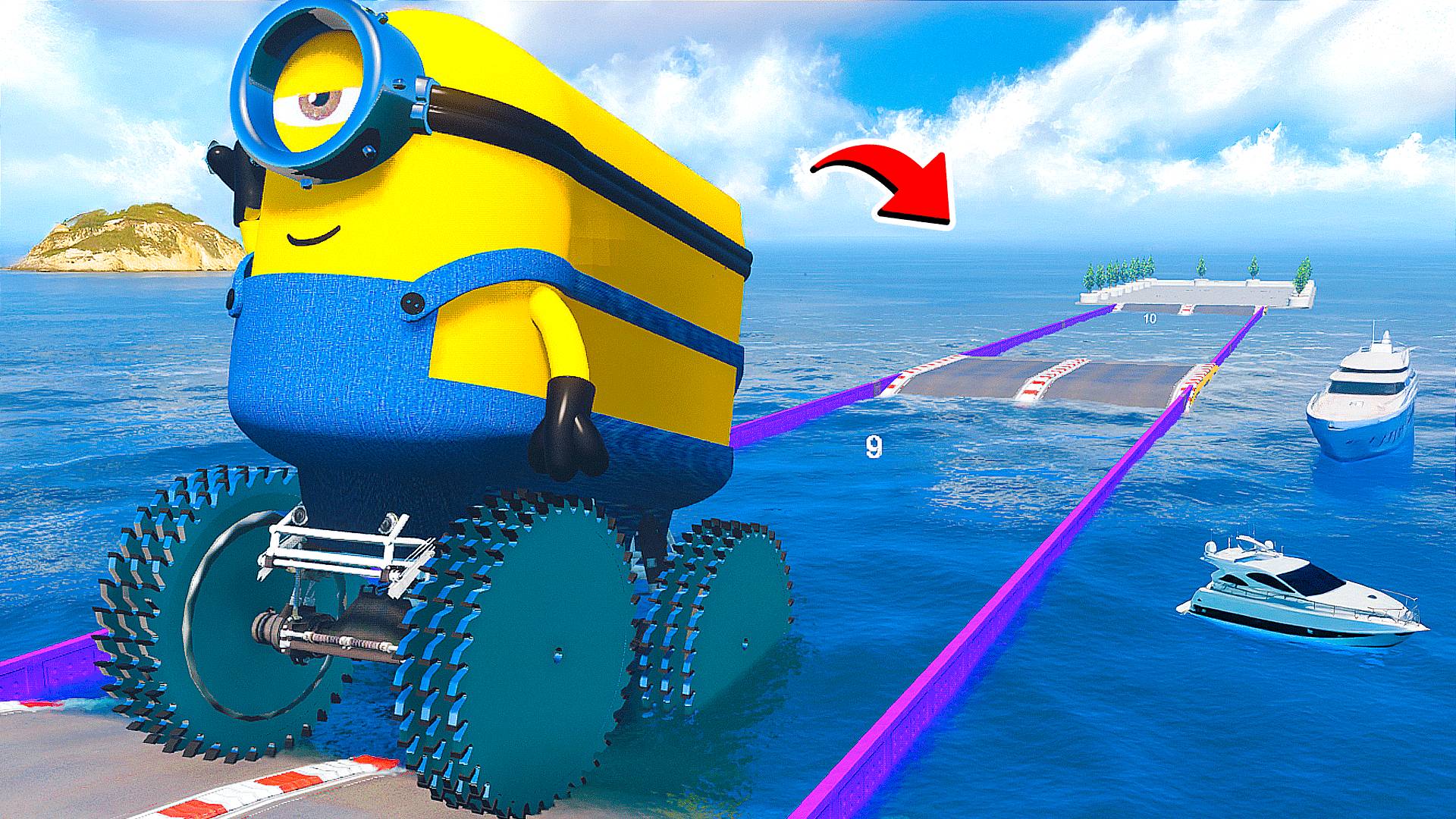 СМОЖЕТ ЛИ ГИГАНТСКИЙ МИНЬОН ПИЛАХ ПРОЕХАТЬ ГЛУБОКУЮ ЯМУ С ВОДОЙ В ГТА 5 МОДЫ ЭКСПЕРИМЕНТЫ GTA 5 MODS