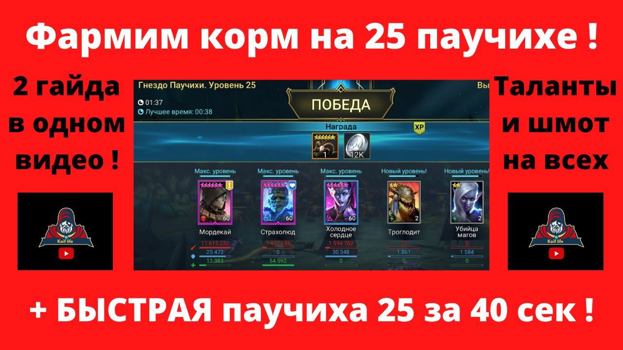 Качаем корм на 25 паучихе + БЫСТРЫЙ паук 25 рейд ! Страхолюд Холодное сердце Мордекай - ТАЛАНТЫ raid