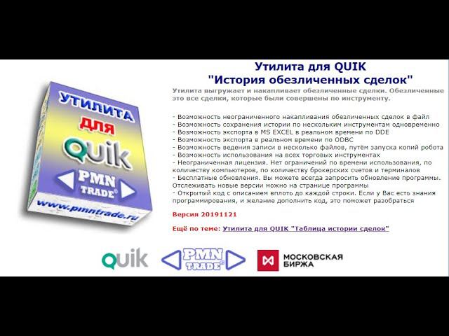 Страница программы: http://pmntrade.ru/export_all_trades.html Утилита выгружает и накапливает обезличенные сделки. Обезличенные это все сделки, которые были совершены по инструменту.