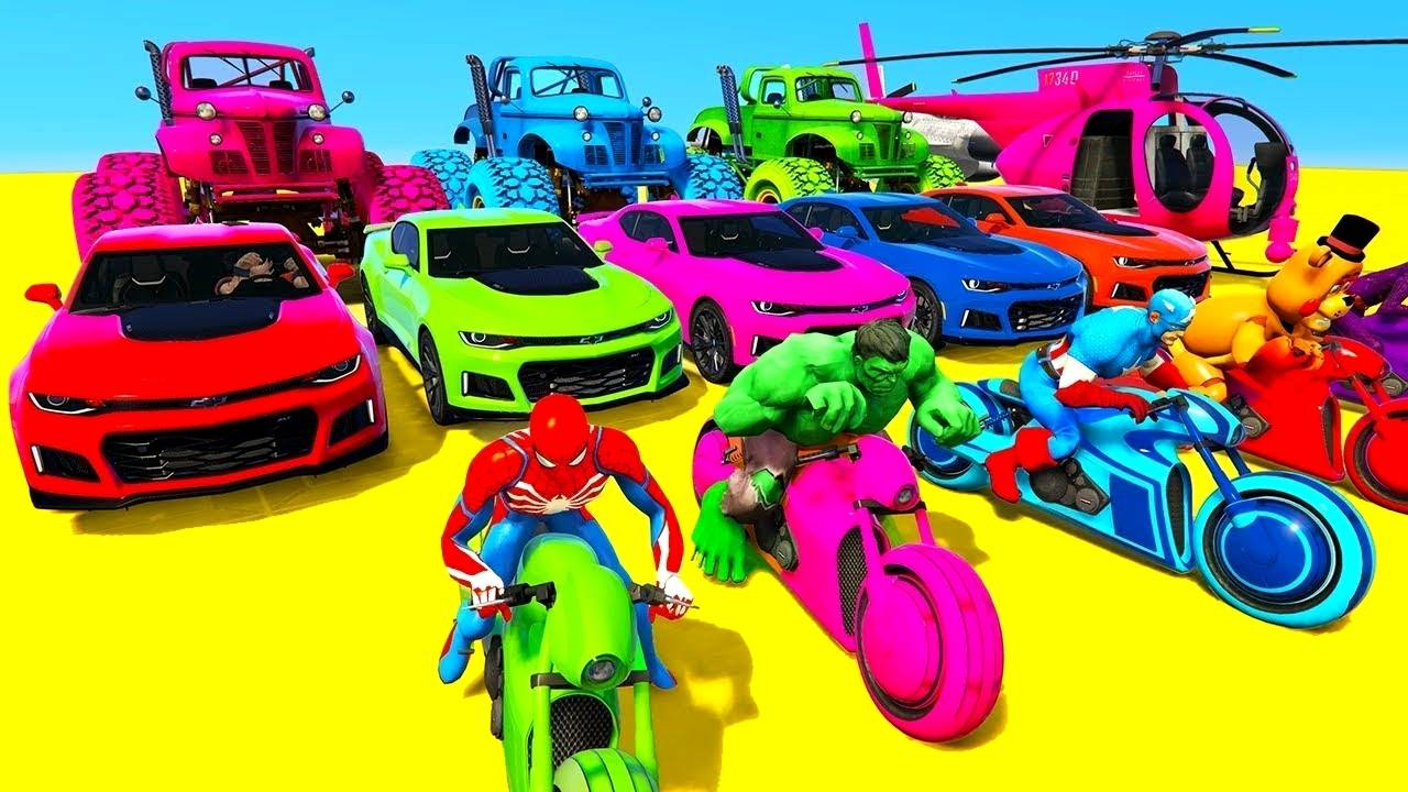 МАШИНЫ МОТОЦИКЛЫ ДЖИПЫ ВЕРТОЛЕТЫ ДЛЯ ЧЕЛОВЕКА-ПАУКА И СУПЕРГЕРОЕВ МУЛЬТИКИ ПРО МАШИНКИ ДЛЯ ДЕТЕЙ