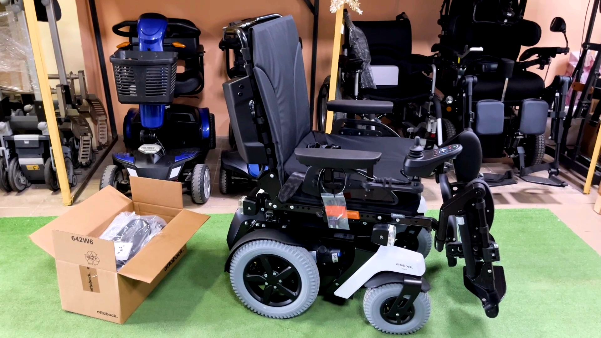 OttoBock Juvo B4 с шириной сиденья XL и электрорегулировками станет надежным помощником в жизни нашего клиента из Екатеринбурга, куда отправится в ближайшее время. Данная коляска была в наличии в нашем магазине. Juvo B4 в такой же комплектации есть в наличии с шириной сиденья 38 и 43 см. ⠀ Juvo B4 - универсальный вариант для дома и улицы. Ее ходовые качества, такие как устойчивость, проходимость и маневренность сочетаются с компактными размерами. ⠀ Комплектация данной коляски: ▫️Электрорегулировки спинки 30°, сиденья 45°, подножек (раздельно) ▫️Контурная спинка (по желанию клиента доп.опция) ▫️Раздельные подножки с алюминиевыми опорами для стоп, опорами для икр и накладками для коленей (доп.опция) ▫️Подушка Terra ▫️Подголовник ▫️Держатель подголовника Gooseneck ▫️Зарядное устройство с возможностью подключения к магнитному разъёму ▫️Разъём для магнитной зарядки ▫️Пульт R-Net с держателем параллельного отведения  (регулировка по высоте 9,5 см) ▫️Амортизация задних колёс ▫️Брызговики на все колёса ▫️Покрышки пневматические с глубоким протектором 10" передние, 14" задние ▫️Освещение на магнитных держателях ▫️Поясной ремень безопасности ▫️Фиксатор грудного отдела (доп.опция) ▫️Аккумуляторы гелевые 63Ач ⠀ ⚠️Обращайтесь к нам, чтобы приобрести под заказ любую модель OttoBock в той комплектации, которая нужна именно Вам! Мы поможем подобрать необходимые параметры, предоставим индивидуальный бланк заказа и поможем заполнить его📝 ⠀ За дополнительной информацией обращайтесь по номеру 📲 +7 985 233-20-88 (есть WA/Viber/Telegram) ⠀ 💳Принимаем электронные сертификаты ⠀ 🌍Отправим в любой регион России