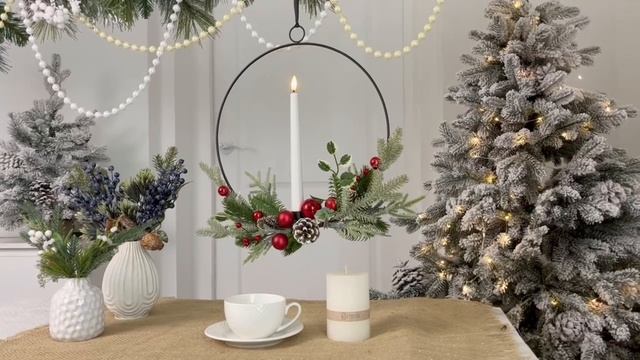Новогодний венок СОЛЬЕВО с красным декором, светодиодная свеча с 'натуральным' фитильком, 1174904