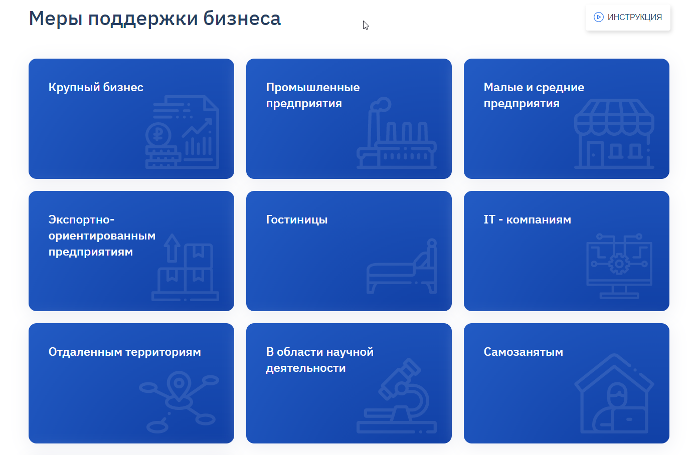 В регионе создан перечень мер поддержки для крупного бизнеса и субъектов МСП – информация о них собрана на инвестпортале Московской области. Видеоинструкция поможет: ? безошибочно подобрать поддержку, подходящую вашему направлению деятельности; ? расскажет о сервисах «Калькулятор мер поддержки» и «Путеводитель для бизнеса». Смотрите нашу видеоинструкцию и выбирайте меры поддержки для вашего бизнеса! Вся информация на инвестпортале Московской области https://investmo.ru/business/support-measures